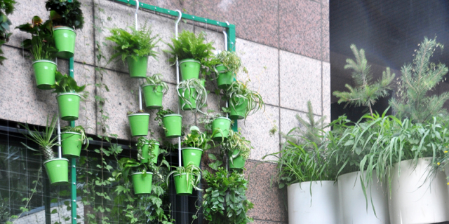 Весной в бизнес-центре «Японский дом», который активно поддерживает использование энергосберегающих технологий, была заложена зеленая стена.